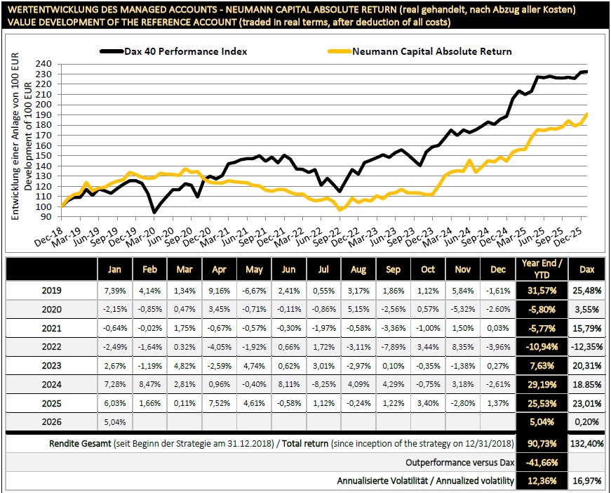 Our proprietary developed and real traded equity-oriented portfolio strategy NEUMANN CAPITAL ABSOLUTE RETURN" has several unique features.